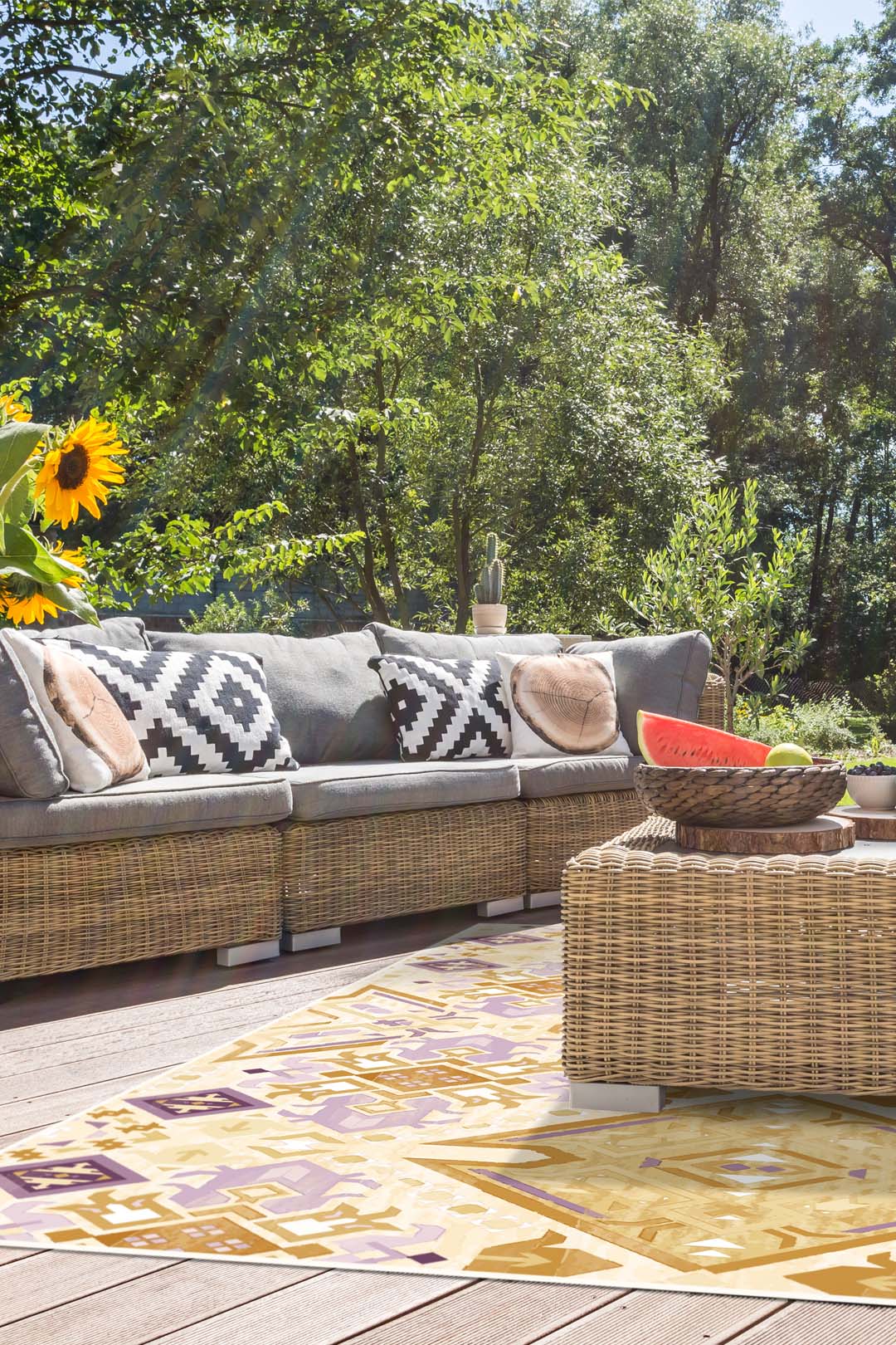 Choose a rug that enhances your outdoor space and transforms your outdoor oasis into a cosy retreat.